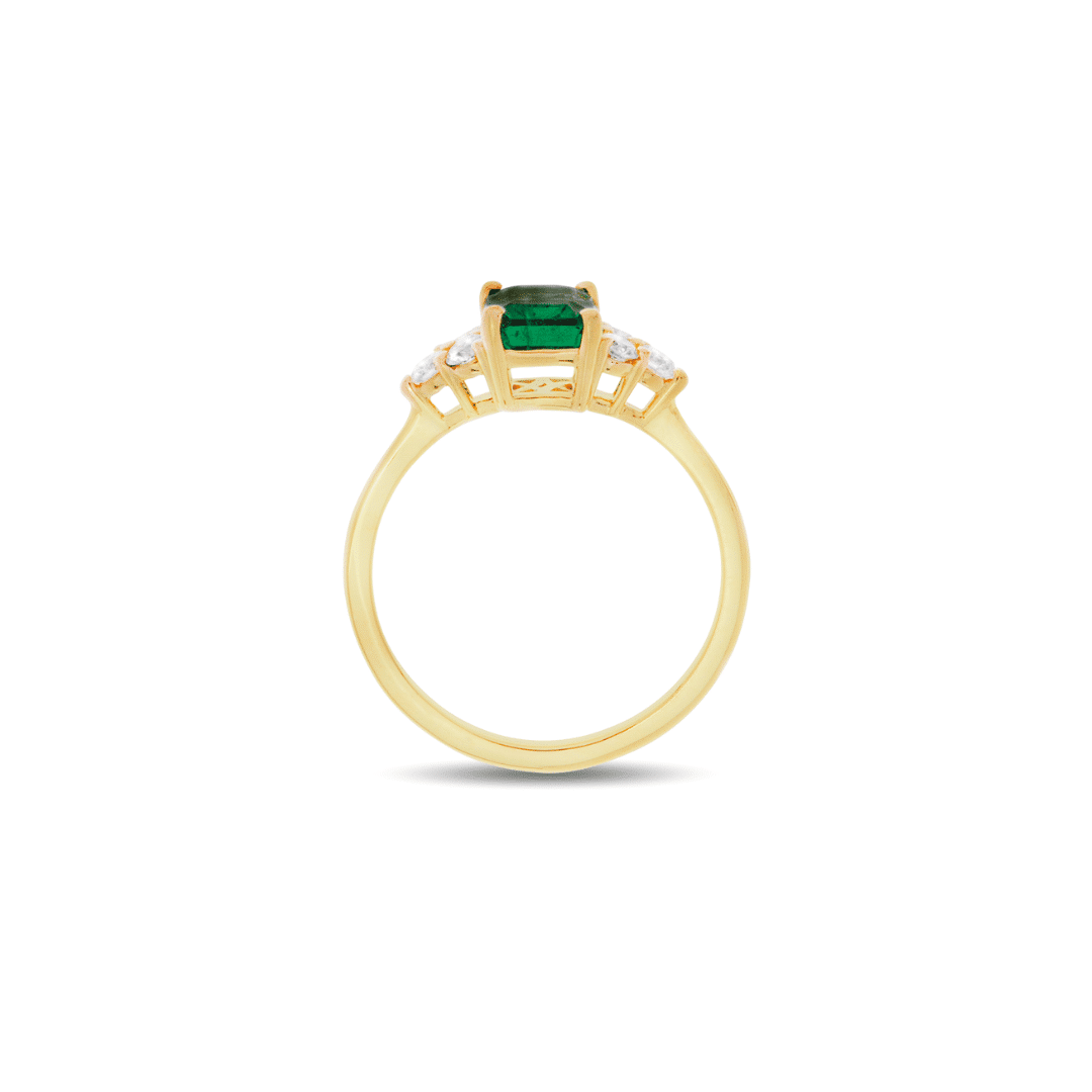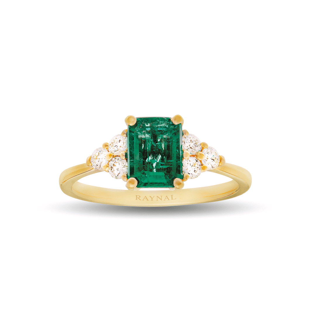 Choisir votre tour de doigtBague or jaune 18 cts serti d’une émeraude taille emeraude et 6 diamants taille brillant.
