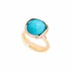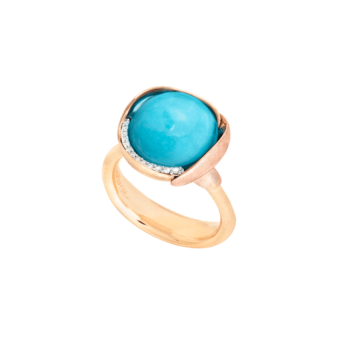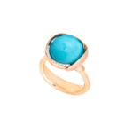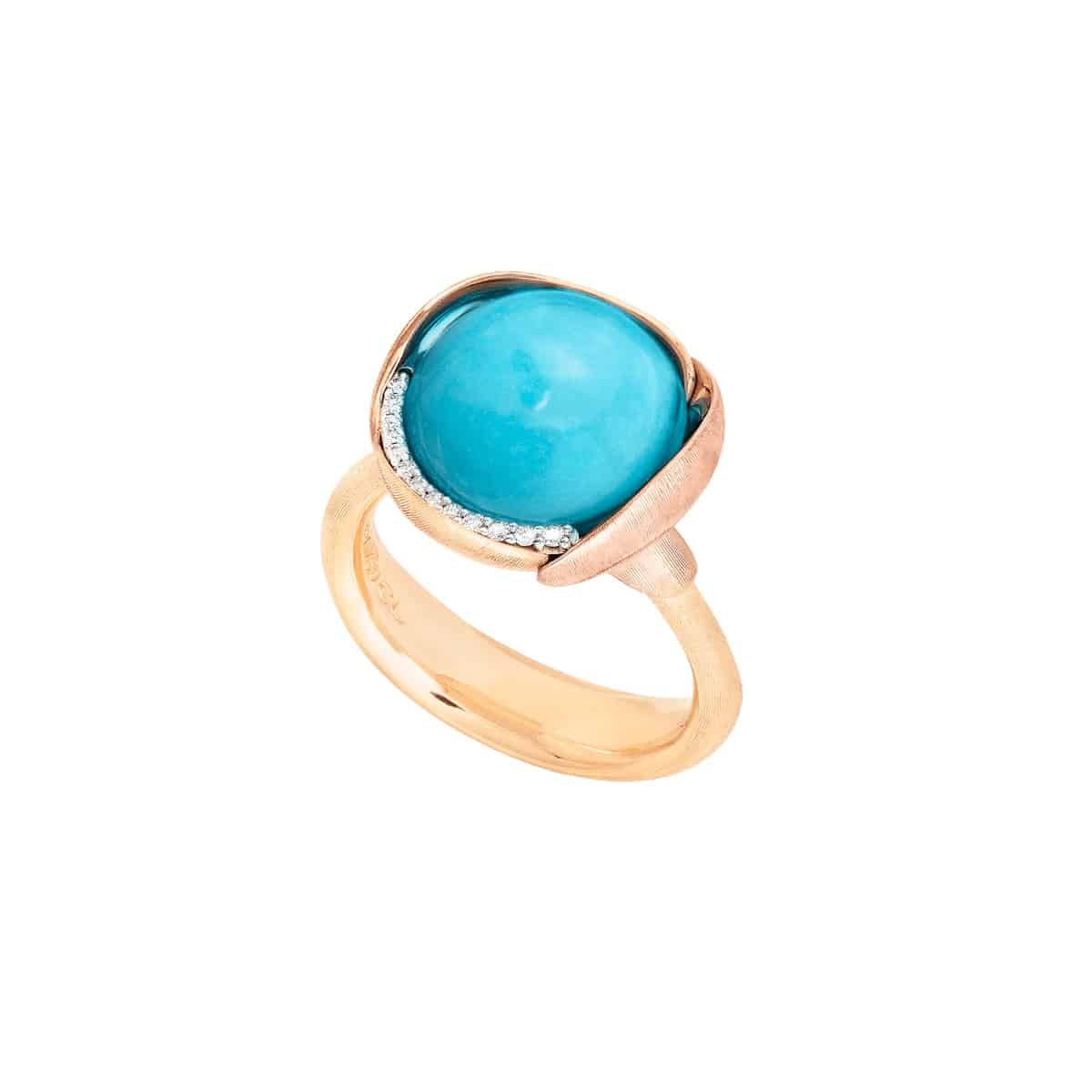 Choisir votre tour de doigtBague Lotus taille 3 – Or jaune 18 carats – Feuilles en or rose avec cabochon turquoise et 13 diamants au total