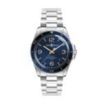 Bracelet : acier poli-satiné ou veau bleu glacé.