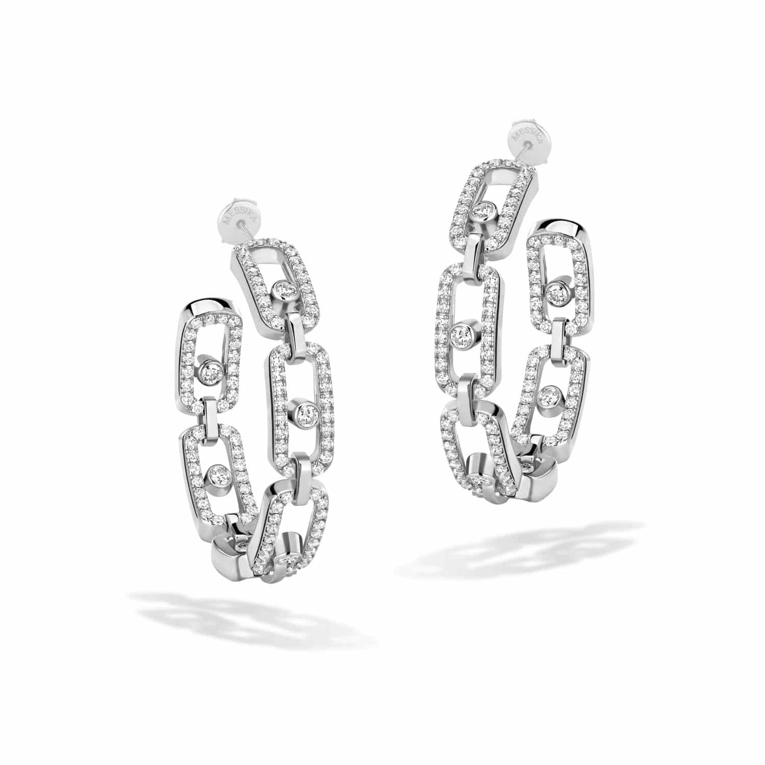 Boucles d’oreilles Créoles Move Link PM, Or Blanc et Diamants Messika