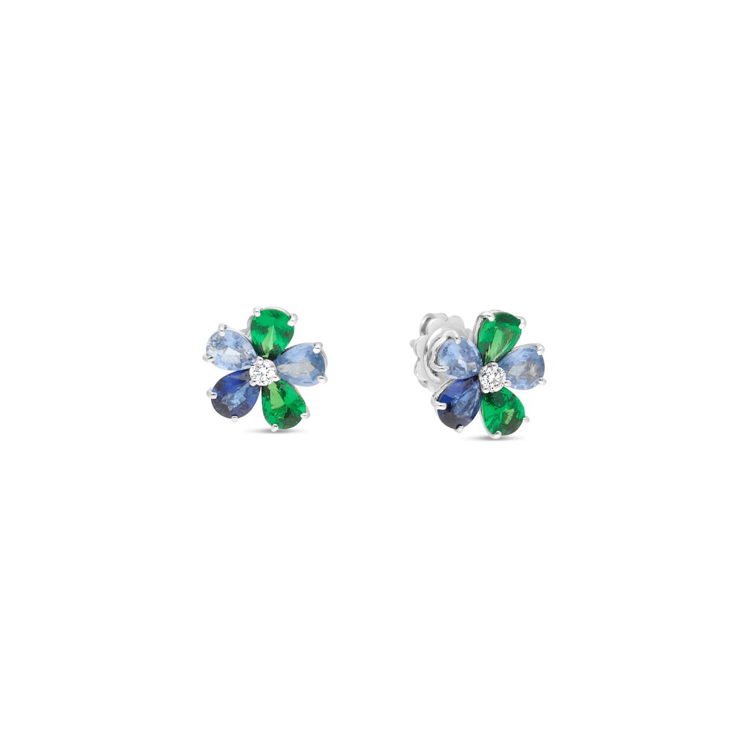 Boucles d’Oreilles Fleur Or Blanc Diamants, Saphirs, Tsavorites Raynal