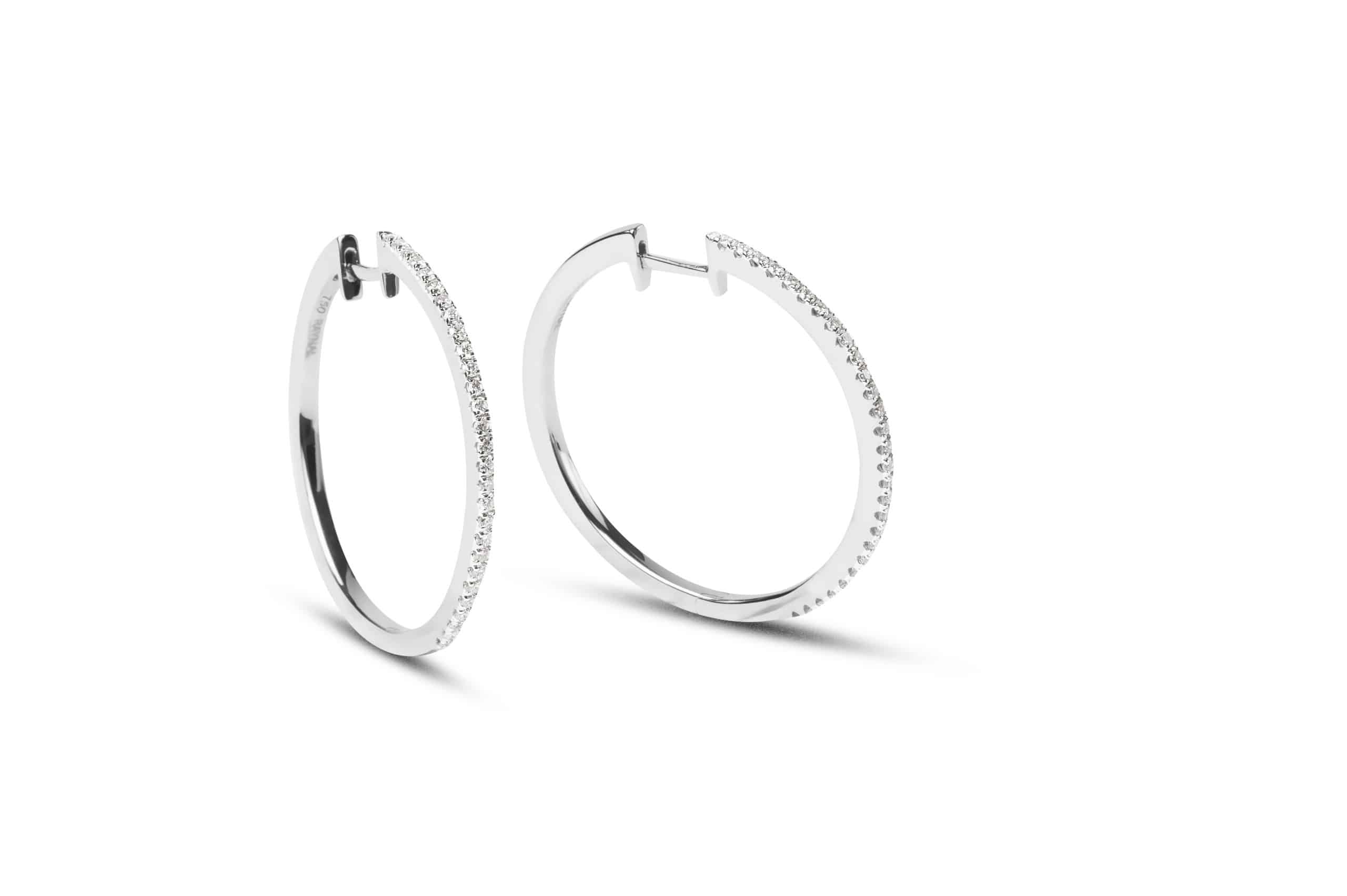 Créoles or blanc 18 ct serties de diamants taille brillant