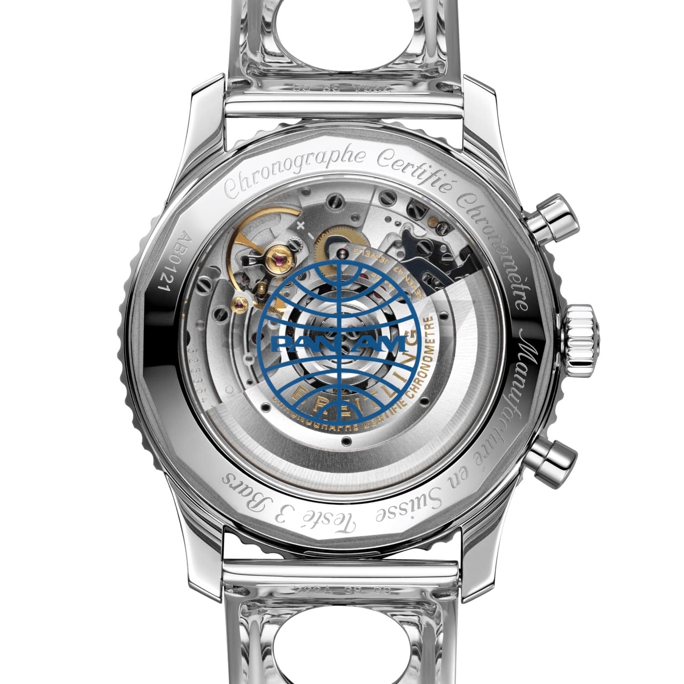 La Navitimer 1 B01 Chronographe 43 Pan Am Edition se distingue par l’un des logos les plus reconnaissables de l’histoire de l’aviation imprimé sur son fond transparent en verre saphir. Pendant des décennies, la compagnie aérienne Pan American World Airways a été l’un des grands fleurons de l’aviation commerciale et son nom résonne encore aujourd’hui comme un souvenir des grands voyages en avion.