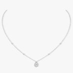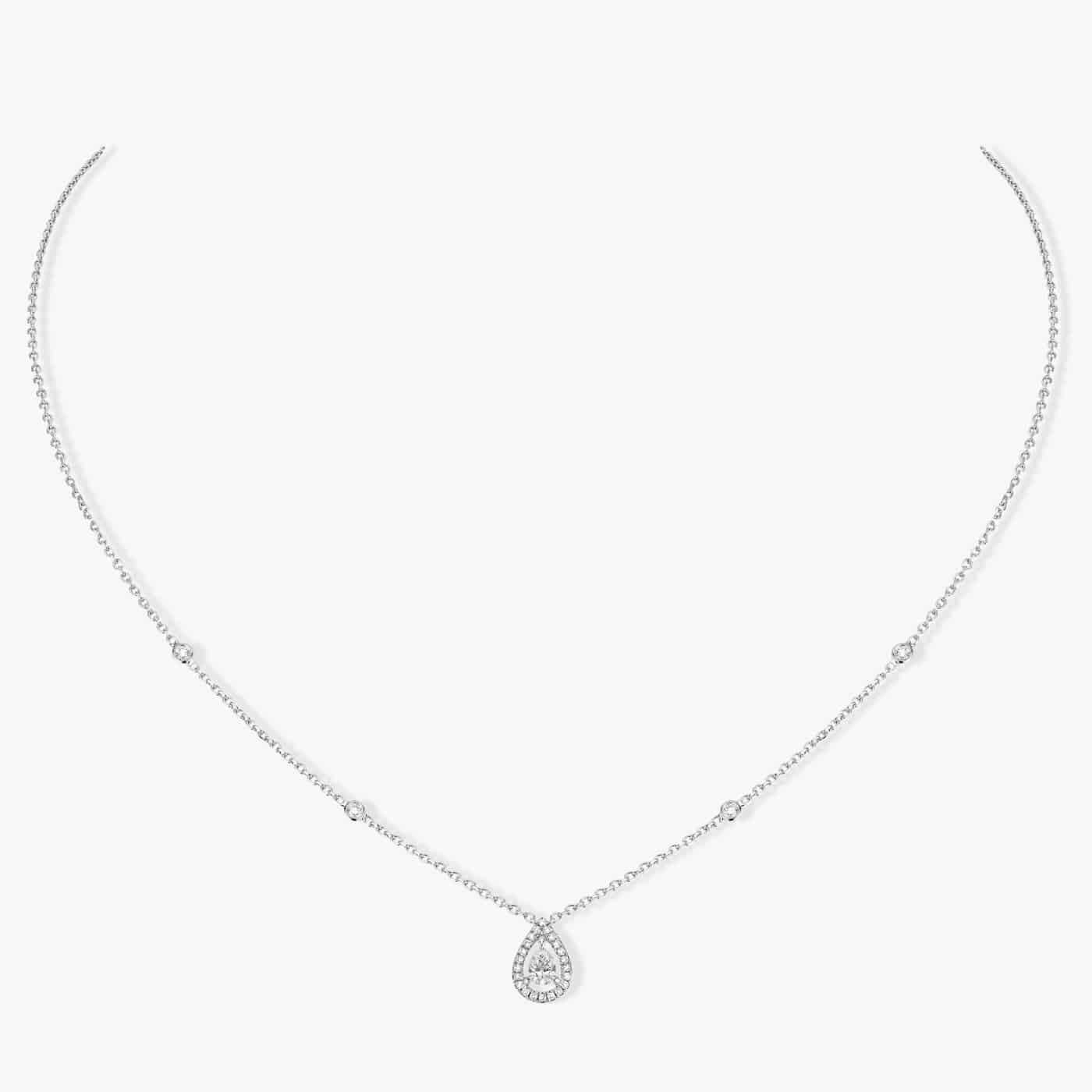Par sa pointe effilée et son côté opposé arrondi se dégage de cette taille une sensualité toute féminine, idéale pour la mise en valeur d’un décolleté. Sur ce collier diamant taille poire de 0,25 ct en or blanc est soigneusement sélectionnée pour ses proportions harmonieuses, sa belle symétrie, caractéristiques prépondérantes dans la brillance de la pierre. Le halo de diamants taille brillant qui l’accompagne révèle l’éclat incomparable de cette forme gracile. Magnifier la reine des pierres en lui donnant plus de relief, c’est de cette vision qu’est né ce collier diamant poire en or blanc Joy… Une collection de joaillerie pour célébrer la vie et ses instants les plus précieux avec éclat et élégance.