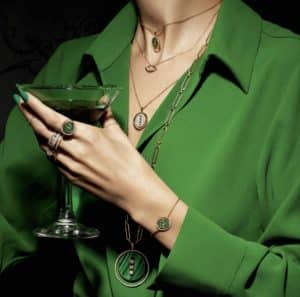A l’instar de la Malachite, pierre précieuse au vert aussi profond que la sagesse de la mère nature. Marié à la chaleur de l’or jaune et à l’éclat des diamants.