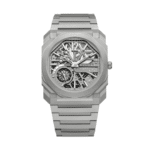 Fusion parfaite du design italien et du savoir-faire horloger suisse, la montre Octo Finissimo Squelette 8 jours arbore un style monochrome puissant et contemporain en titane, assorti d’un cadran squelette pour une lisibilité optimale. Doté d’une impressionnante réserve de marche de 8 jours, ce garde-temps offre aux connaisseurs de l’horlogerie un aperçu du fonctionnement interne de son spectaculaire mouvement de manufacture extra-plat à remontage manuel, logé dans l’emblématique boîtier octogonal extra-plat de la montre.