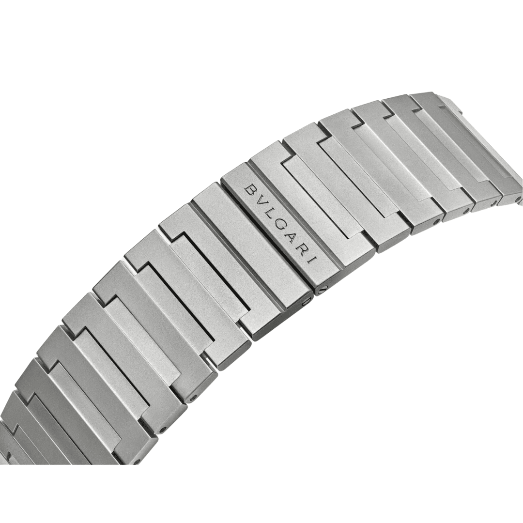 Montre Octo Finissimo Squelette 8 jours dotée d’un mouvement mécanique de manufacture extra-plat à remontage manuel, d’un calibre BVL 199 SK (2,50 mm d’épaisseur), de ponts squelettés, d’une petite seconde et d’une réserve de marche de 8 jours (192 heures). Boîtier de 40 mm en titane (5,95 mm d’épaisseur), couronne en titane sertie d’un insert en céramique noire, cadran ajouré avec indicateur de réserve de marche et compteur de petite seconde, logo BVLGARI eight days, fond de boîtier transparent, bracelet en titane avec boucle déployante à trois lames. Étanche jusqu’à 30 mètres.