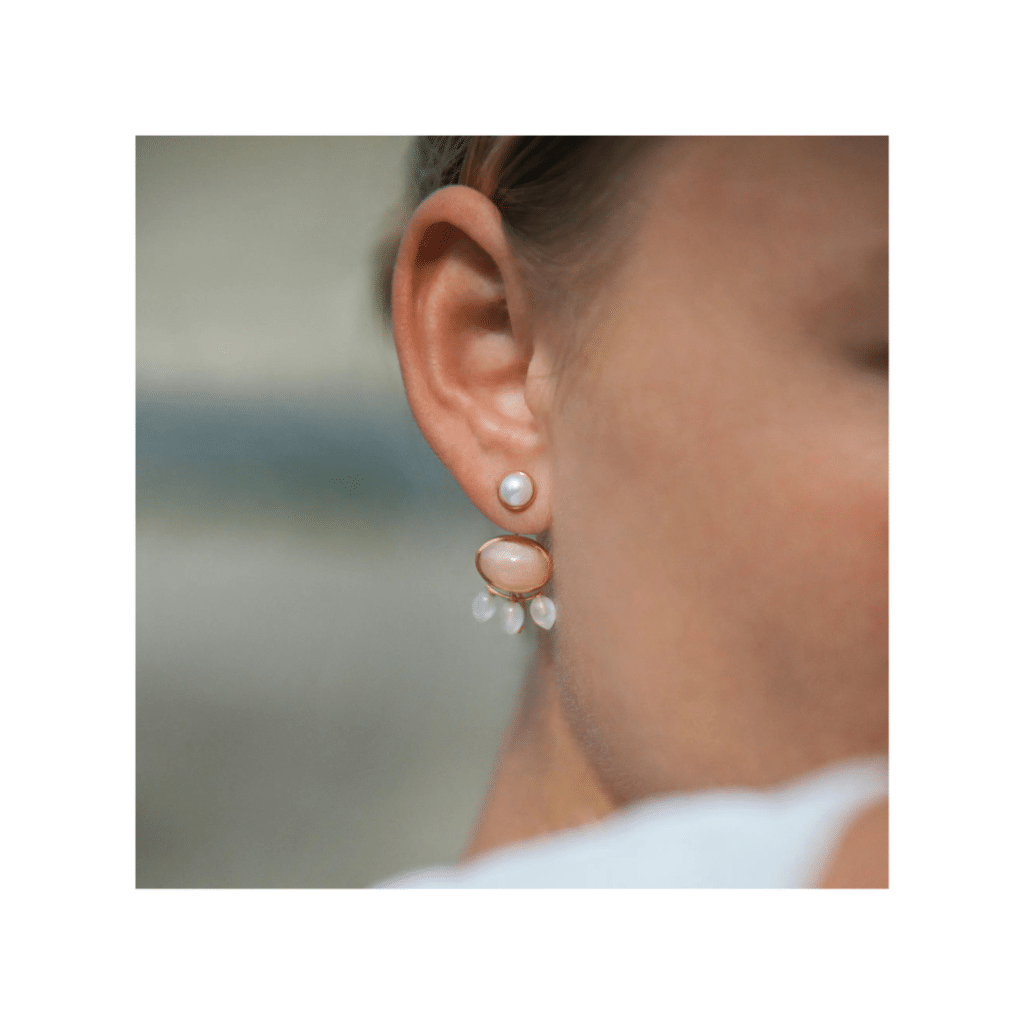 Pendant pour boucles d’oreilles or jaune 18 cts 6 pierres de lune 6×4,5