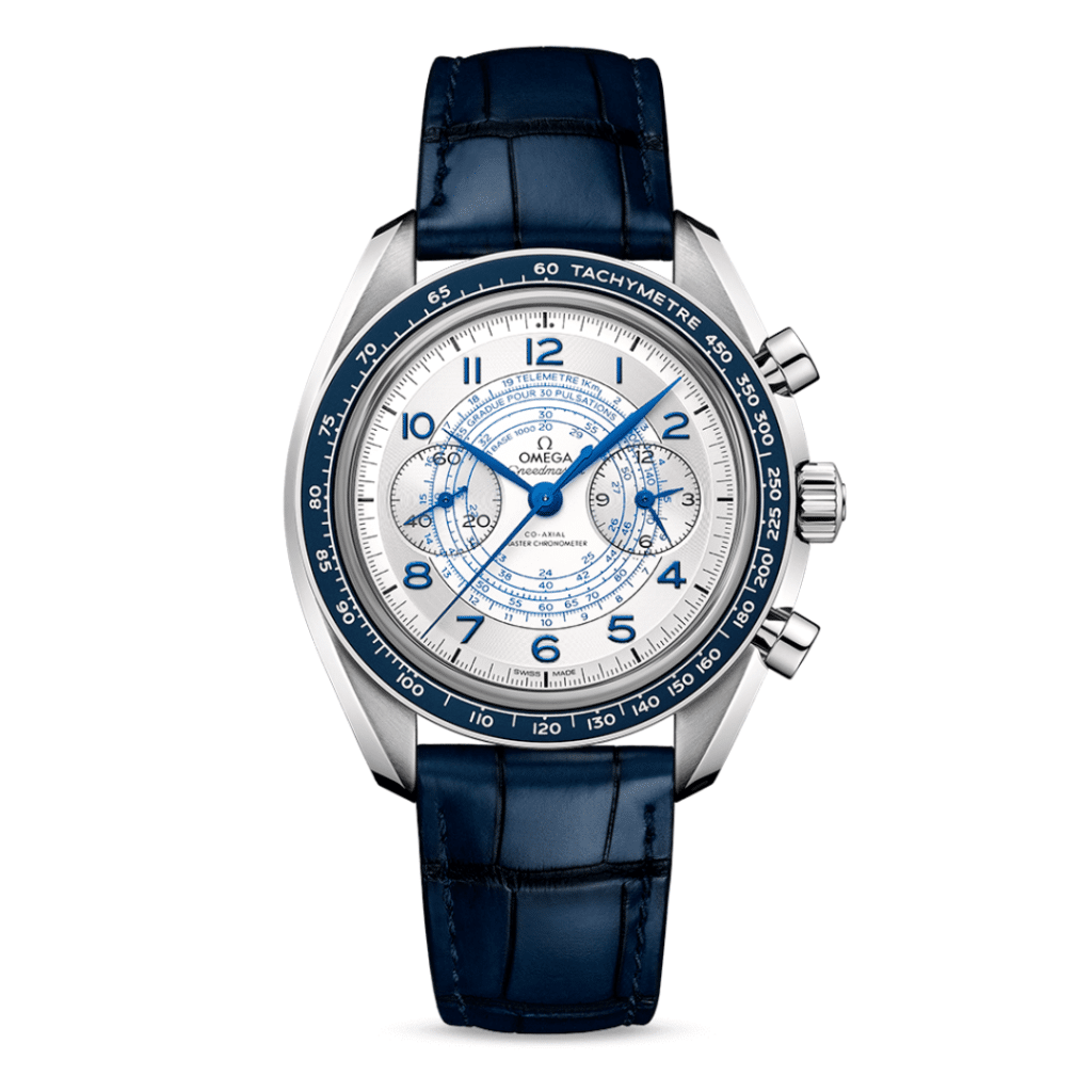 La collection Chronoscope reprend le design légendaire de la Speedmaster et l’associe à celui des montres-bracelets chronographes OMEGA des années 1940.