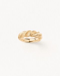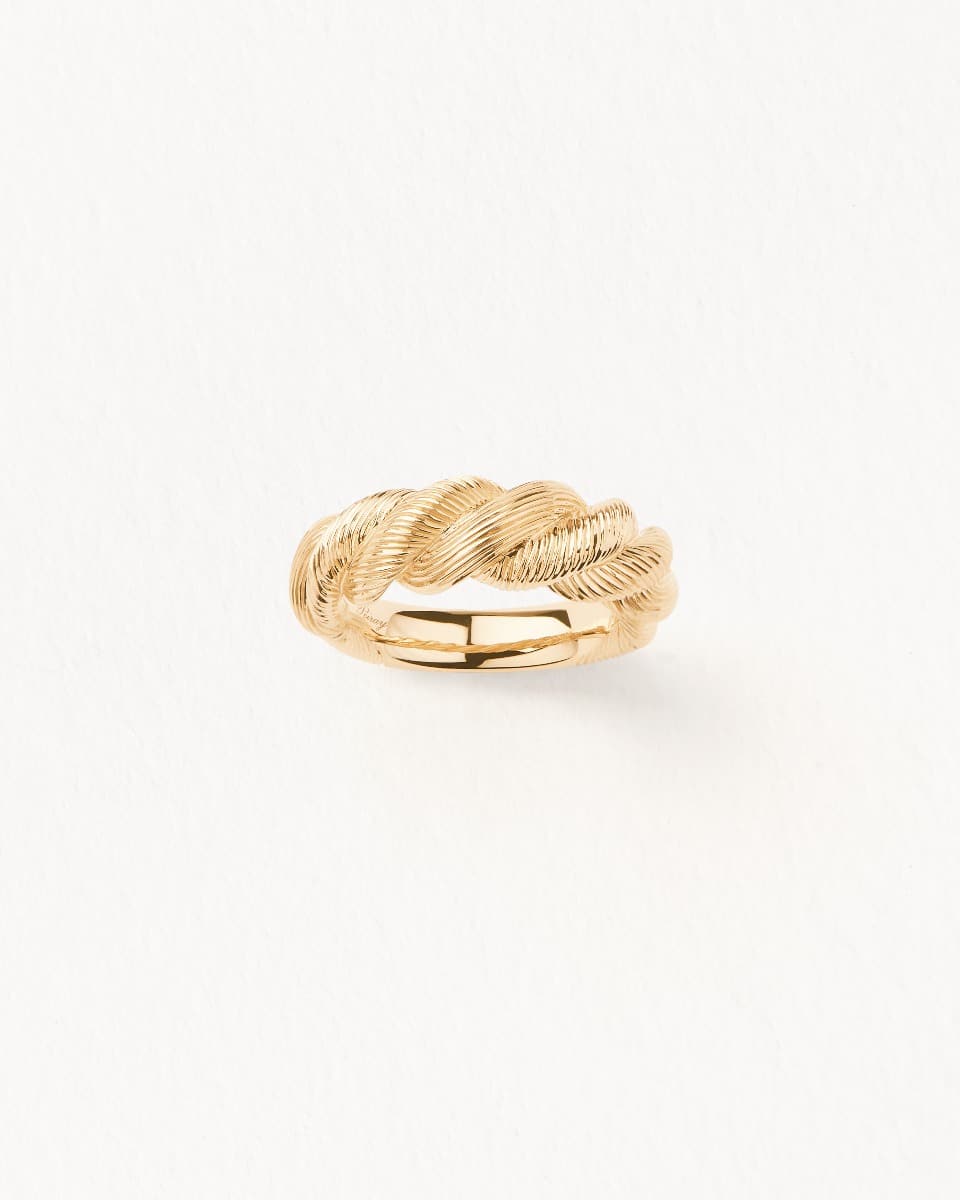 Choisir votre tour de doigtInvitation à l’insouciance, la collection Dune de Poiray traverse les saisons et rend hommage aux plus belles heures de l’été. Son motif torsadé évoque les cordages de voile, les bateaux, le relief harmonieux d’un paysage de dunes. Chaque pièce est ciselée de manière artisanale et révèle un savoir-faire joaillier d’exception. Bague Dune de Poiray en or jaune torsadée.