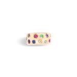 Colorée et enjouée, ICONICA brille des couleurs de l’arc-en-ciel qui habillent les gemmes serties en forme d’étoile, de triangle, d’ovale ou de carré, typiques de la collection.