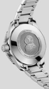 L’alliée idéale de vos plongées. Dotée d’un cadran argenté, cette édition spéciale 36 mm de la TAG Heuer Aquaracer est prête à relever tous les défis. Les aiguilles et les index noirs plaqués or et recouverts de Super-LumiNova® offrent une lisibilité absolue