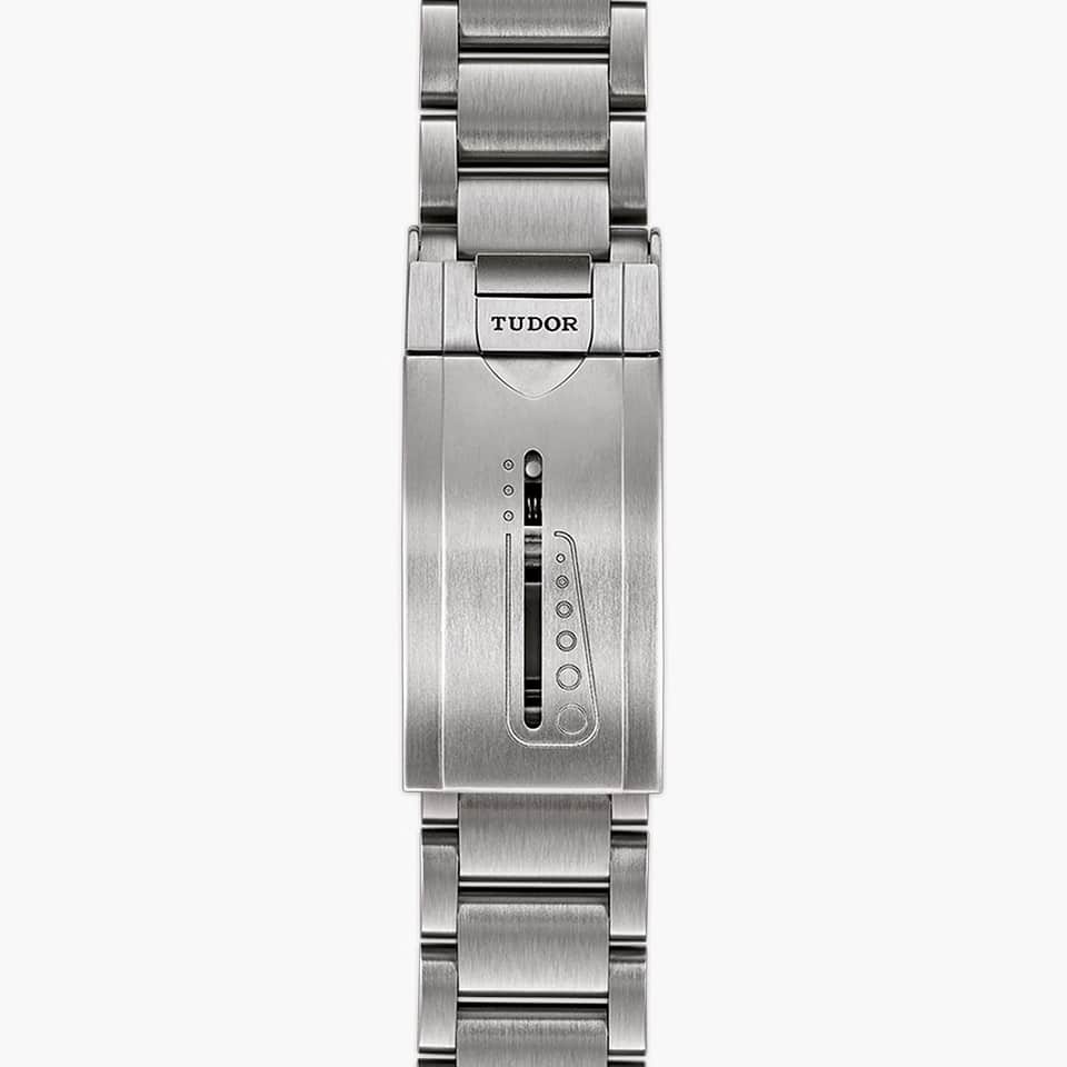 Bracelet en titane avec boucle déployante et fermoir de sécurité en acier et système de rallonge de bracelet développé et breveté par TUDOR